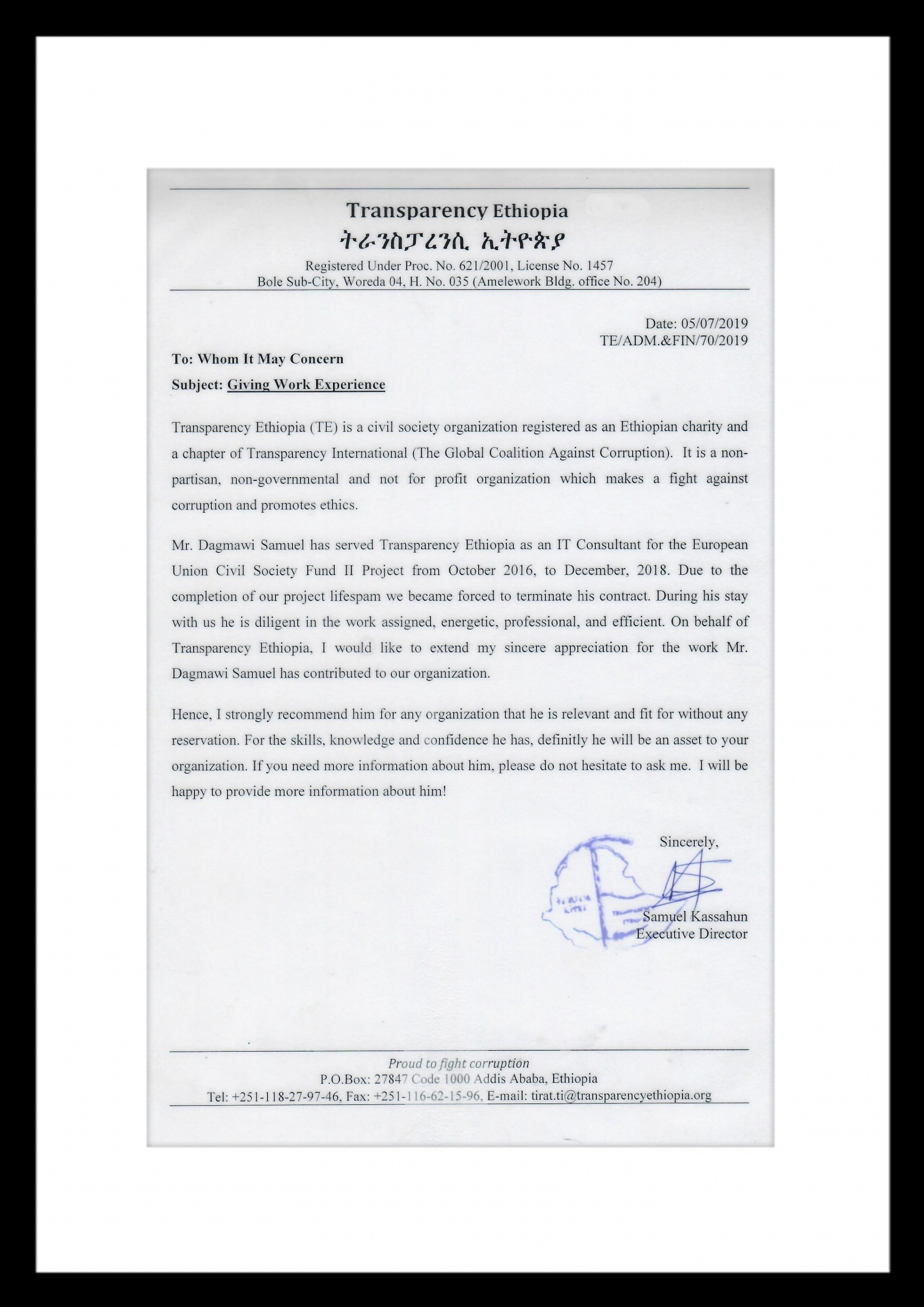 Let's connect and explore how my skills and experience can contribute to your projects and initiatives. LinkedIn: https://www.linkedin.com/in/dagmawisamuel/