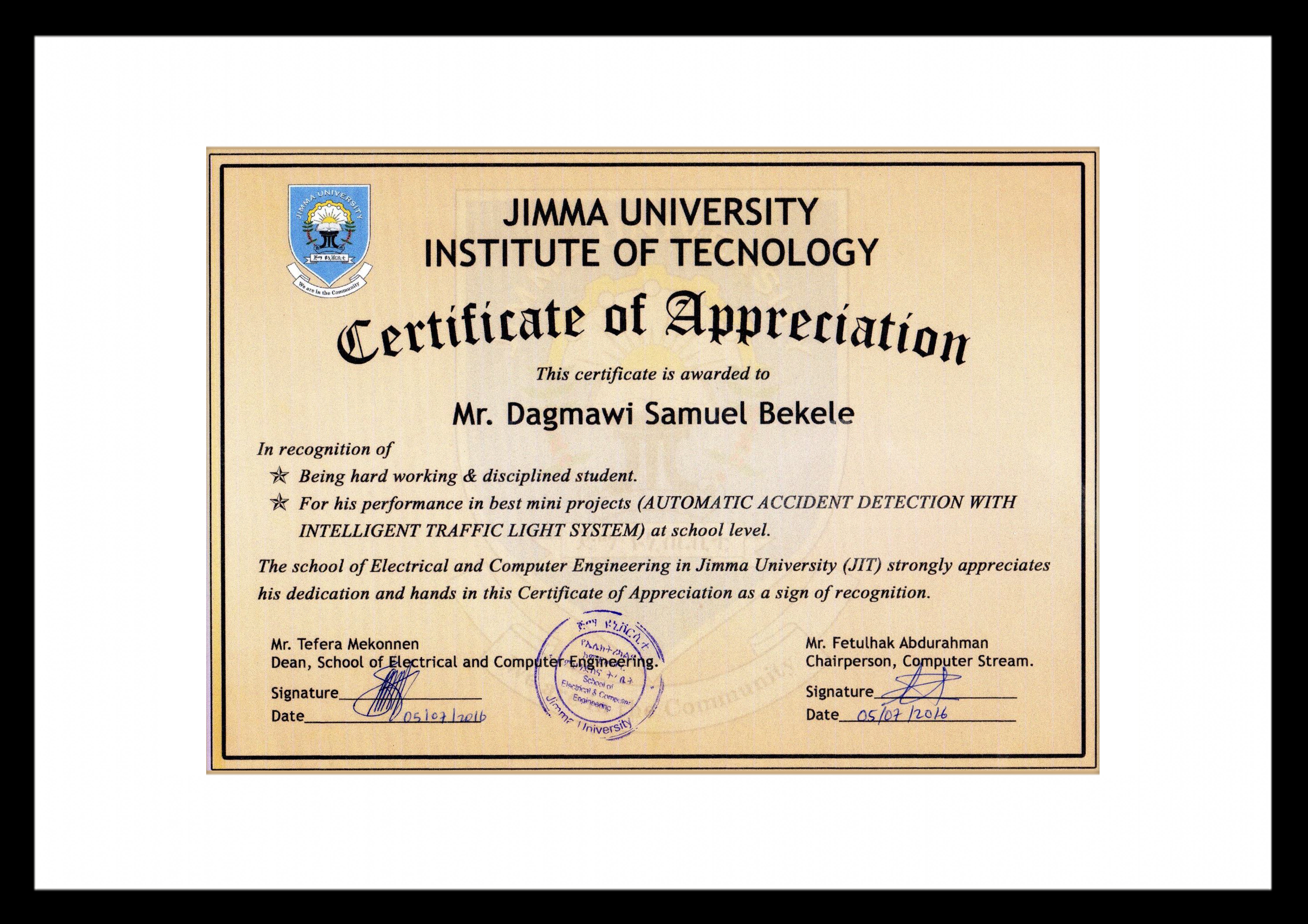 My journey began with a Bachelor of Science degree in Electrical and Computer Engineering (Computer Area) from Jimma University's Institute of Technology in June 2016. During my undergraduate years, I earned accolades for my dedication and exceptional final-year project, demonstrating original thinking.
